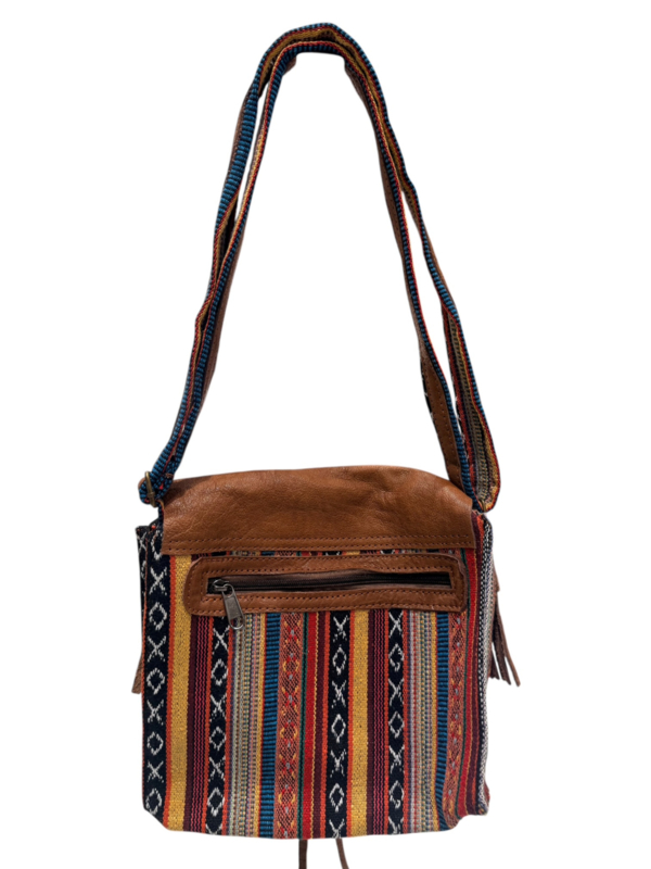 Artikelnummer: EARblossomDe schoudertas Earth is een elegante schoudertas. Gemaakt van hoogwaardig dik Nepalees textiel, duurzaam eco leer en katoen. Met verstelbare schouderband voor optimaal draagcomfort. Achterzijde voorzien van een handig vak van 16 cm hoog met rits. Ritssluiting aan bovenzijde en met een leren flap met knoop sluiting.