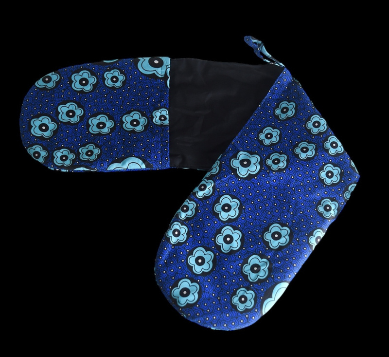 De ovenwanten zijn duurzaam, ze zijn namelijk deels gemaakt van restanten Kitenge textiel. Kitengue is de kleurrijke en levendige textiel afkomstig uit oa Kenia, Tanzania en Oeganda. De achterzijde van de dubbele ovenwant is met zwarte voering.
