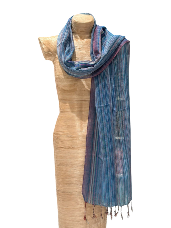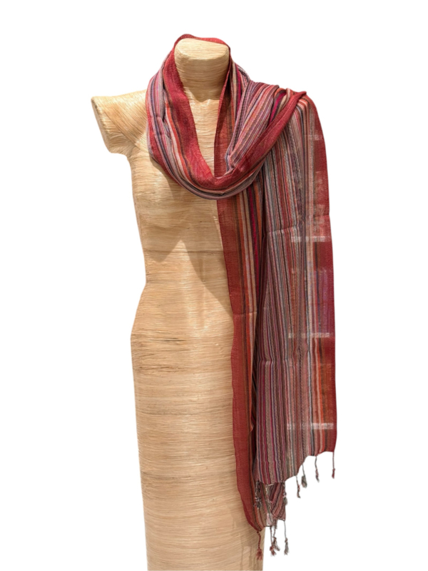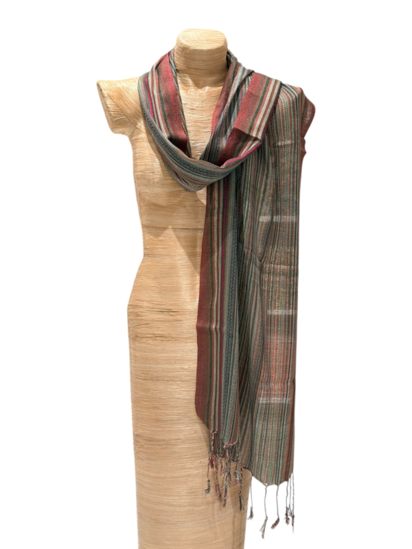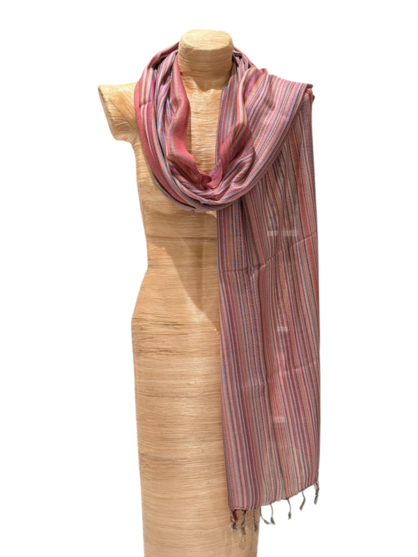 Katoenen sjaal uit Nepal. De sjaal heeft een zachte glans en voelt zijdezacht aan. Ontwerp met een fraai streepdessin. Afmeting: 180 x 50 cm - zonder franje. Een prachtige sjaal waar je veel plezier van zult hebben. Wasadvies:…