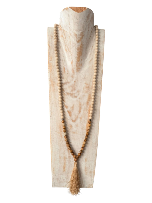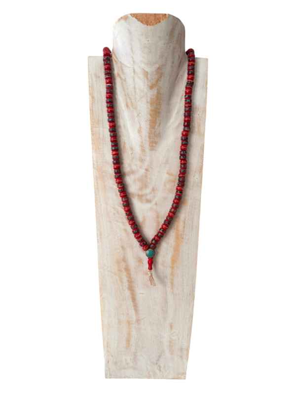 De kralen van een mala kunnen uit verschillende materialen bestaan zoals van edelstenen, zaden van de rudraksha-boom of lotusbloem, van hout, lavasteen of metaal. Onderaan de mala ketting hangt vaak een zijden kwastje, een simpele kraal of een prachtige Nepalese kraal. De lengte van de mala hangt af van de grootte van de kraal.